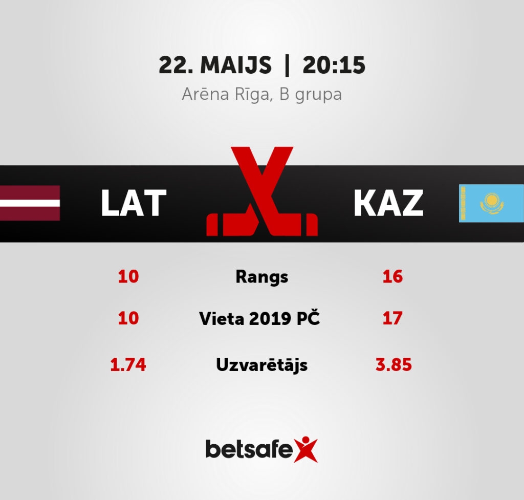 Attiecīgi 22. maija spēle pret Latviju Kazahstānas izlasei būs pirmā spēle elitē kopš 2016. gada. Kazahstānas izlases PČ sastāvā ir trīs Kanādā dzimuši spēlētāji (Valks, Blekers un Diecs), kā arī Zviedrijā dzimušais Viktors Svedberjs, kuri visi naturalizēti pēc uzspēlēšanas “Barys” sastāvā. Kopumā kazahiem būs 18 hokejisti ar KHL pierakstu, no kuriem, jā, pārsvarā ir “Barys” pārstāvji un nespēlē vadošās lomas šajā komandā, taču, paskatoties KHL tabulā, kur ir Rīga un kur “Barys”, par šo faktu varbūt smīkņāt nevajadzētu.