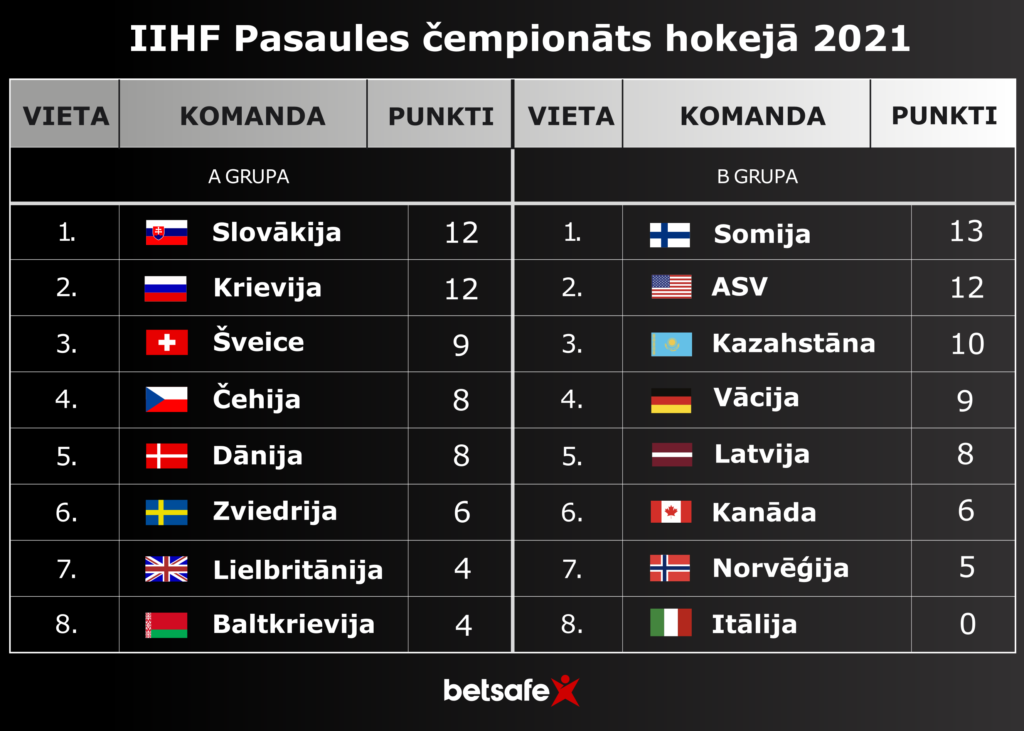Latvija pret Somiju gan tāpat cīnīsies grupu turnīra izskaņā, un jāuzsver, ka Somija uz Rīgu atbraukusi kā pašreizējā pasaules čempione. Šo godu somiem sanācis paturēt divus gadus, jo 2020. gadā jauni čempioni gluži vienkārši netika kronēti. Somija 21. gadsimtā par čempioni kļuvusi divas reize un deviņas reizes iekļuvusi medaļniekos, kas, protams, ir Somijas minimālais mērķis arī šoreiz. “Betsafe” bukmeikeri Somiju pirms čempionāta novērtēja kā piekto ticamāko zelta medaļas ieguvēju (koeficients 9.00), taču augstu vērtēja tās iespējas uzvarēt B apakšgrupā (koeficients 2.75), šajā ziņā to ierindojot tikai nedaudz aiz Kanādas.